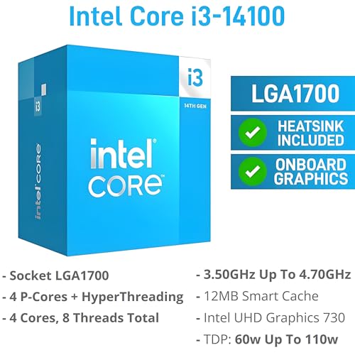 14th Gen Intel Core i3-14100, 4C (4P + 0E) / 8T, P-core 3.5 / 4.7GHz, 12MB