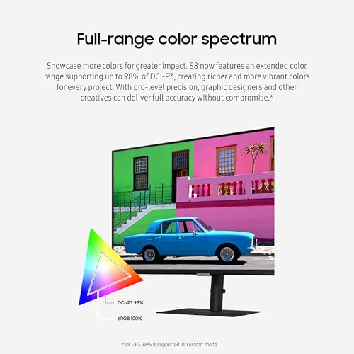 DCI-P3 98%: S8 now features an extended color range supporting up to 98% of DCI-P3, creating more vibrant colors for every project; With pro-level precision, graphic designers and other creatives can deliver full accuracy without compromise